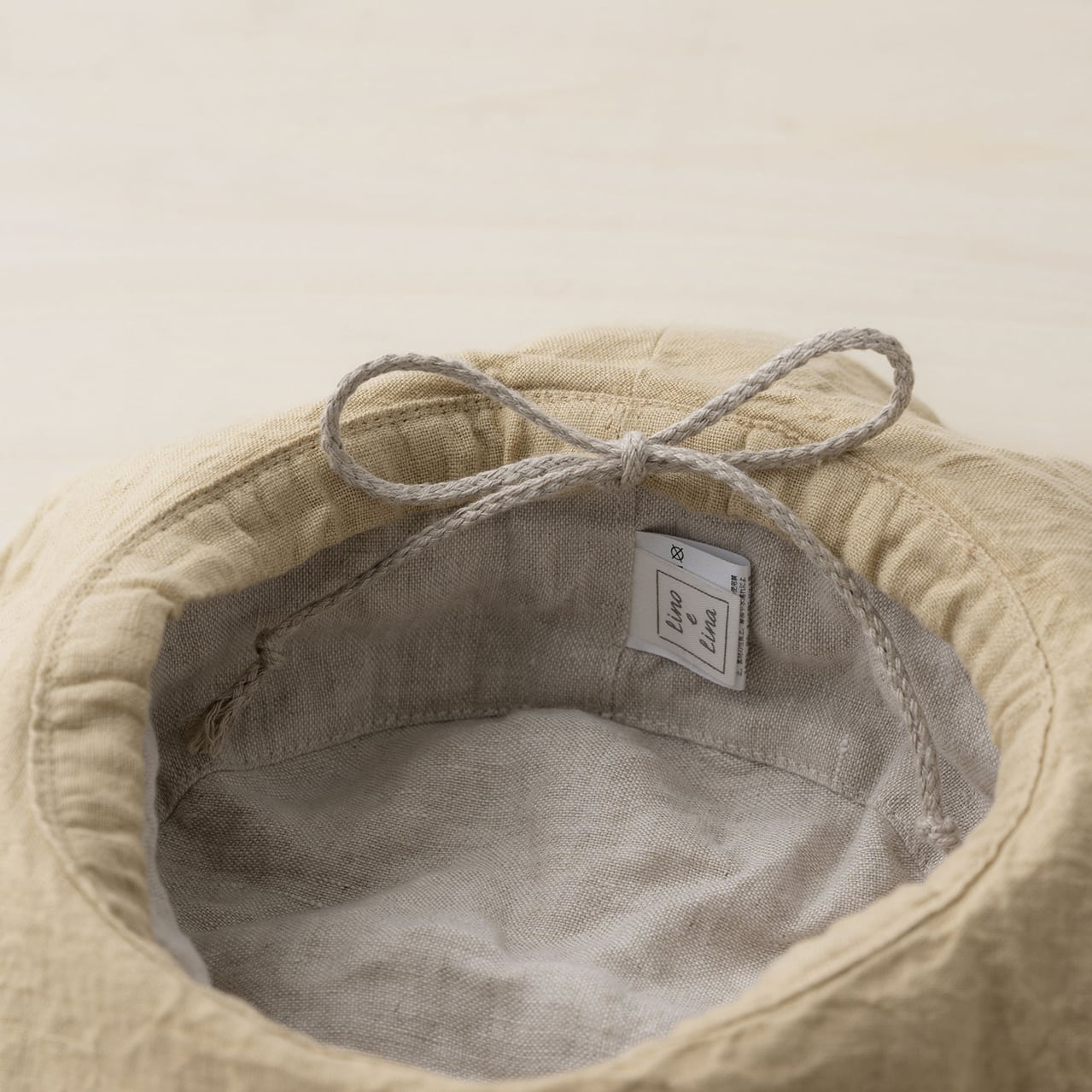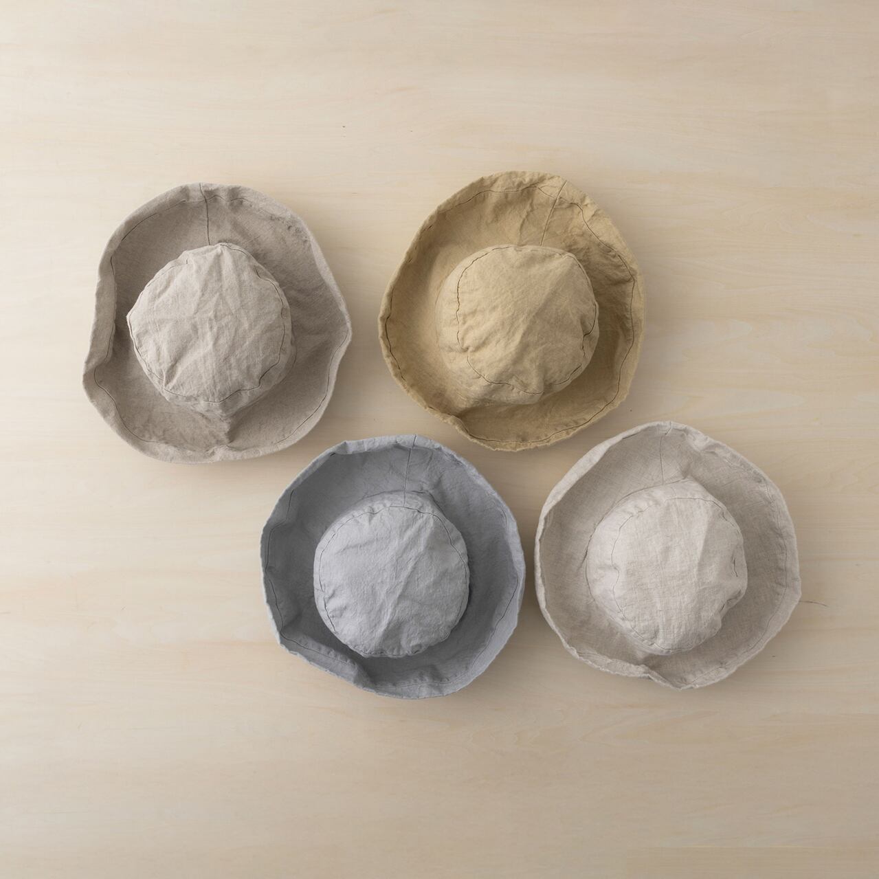 「リーノ・エ・リーナ」のリネン・ハットは、一度洗いにかけたリネン生地を使用。