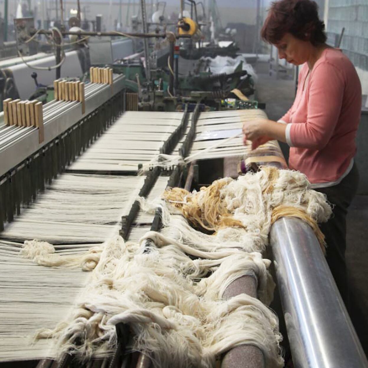 リトアニアを含むヨーロッパの家庭では⾝近な存在のリネン。原料であるフラックス(亜⿇)の栽培から紡績、⽣地の⽣産、製品の製造までを⾏うリネン繊維業はリトアニアの主要産業のひとつで、国内には⼤⼩のリネン⼯場がたくさん存在します。