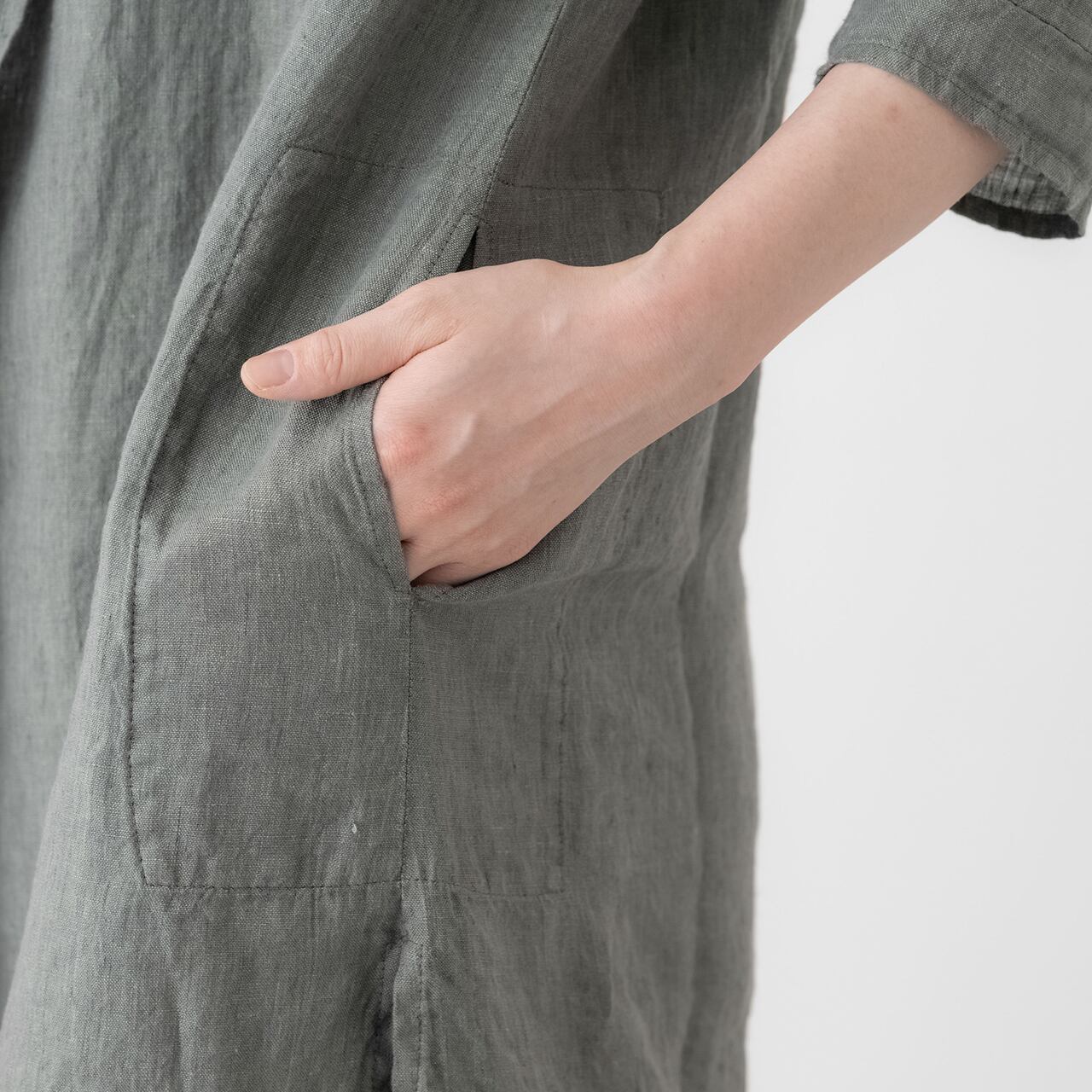 予め洗いにかけた、ウォッシュドリネンを使用しています。洗濯のたびに柔らかさが増し、肌馴染みがよくなっていきます。ウォッシュドリネンは張り感のあるノンウォッシュドのリネンに比べて、使い始めから柔らかな風合いを楽しめるのが特徴です。