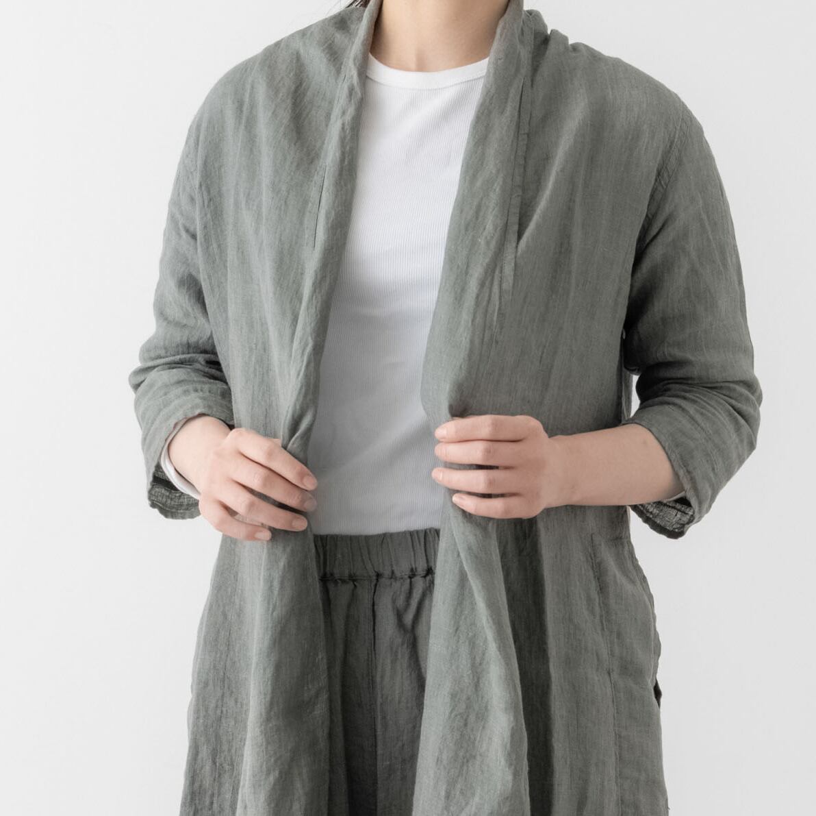 リネンは使うほどに愛着が湧く自然素材。リネン100%、ローブタイプのカーディガンをご用意しました。