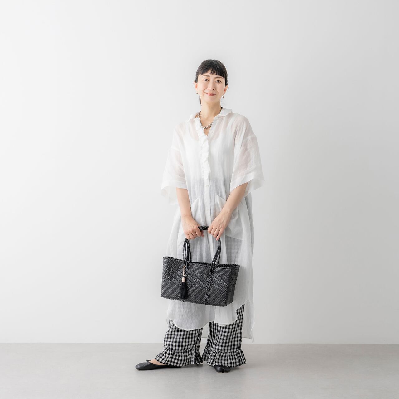「年代問わずおしゃれに決まる大人のメルカドバッグをつくりたい」と真藤さんが考えたのは、編み模様にこだわった黒と白のシンプルな2モデルです。