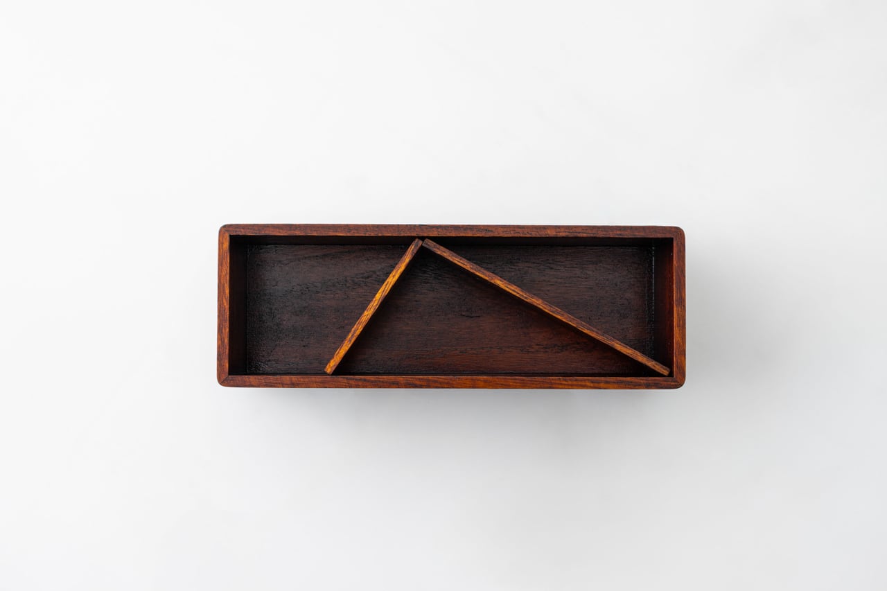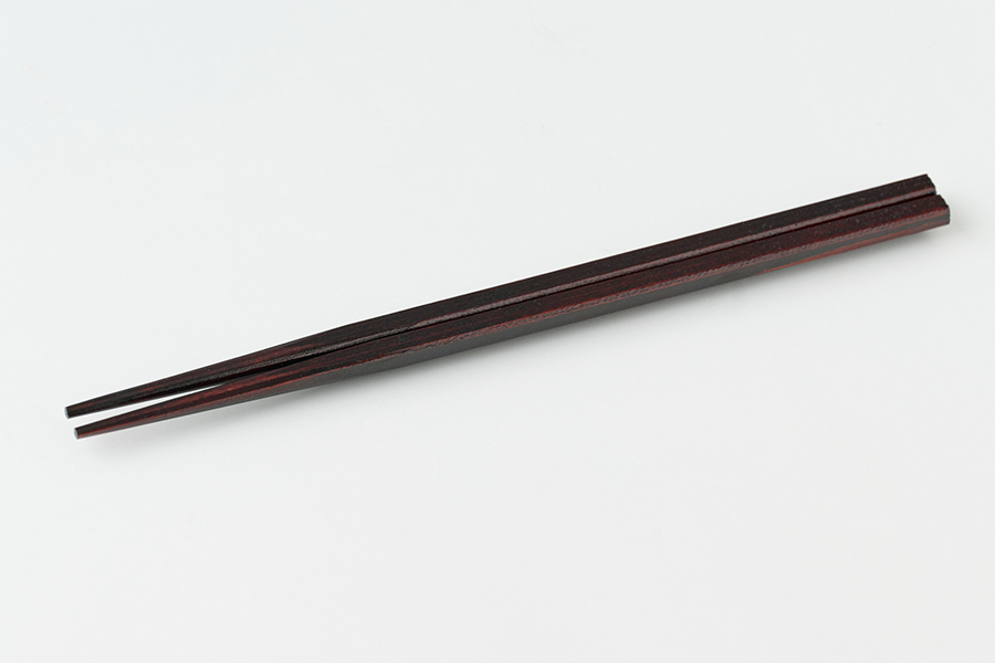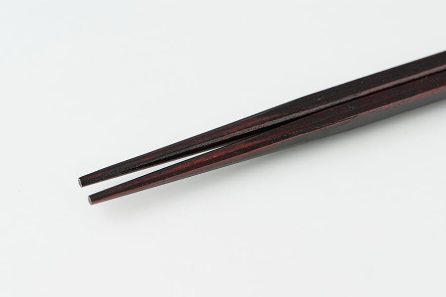 吉野杉の芯の硬い部分を使用してつくられたお箸は、とても軽く、重さを感じさせないほど。お弁当箱と同様に、拭き漆が施されています。