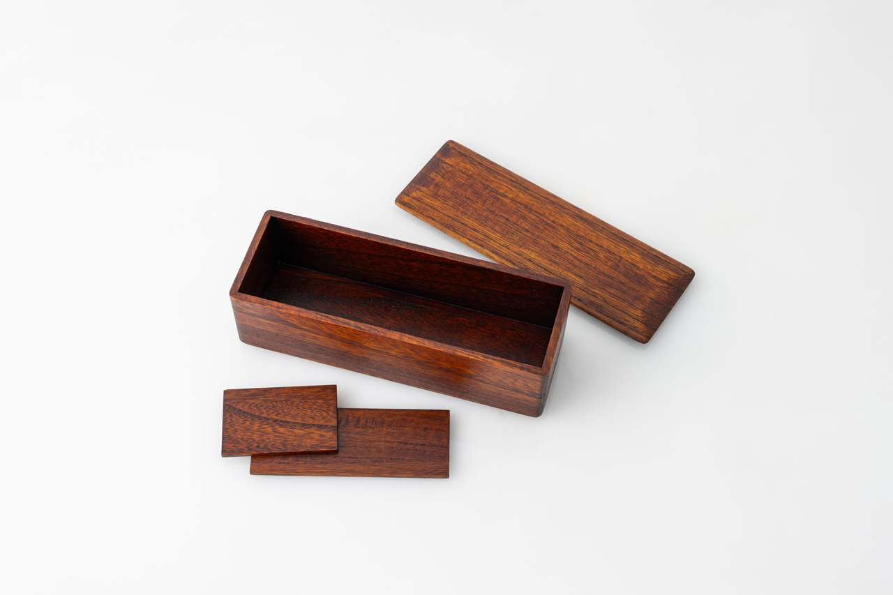 自在道具のお弁当箱は、桐の木に拭き漆を施したもの。軽くて、耐久性が高く、ていねいにお手入れすることで何十年も使うことができます。